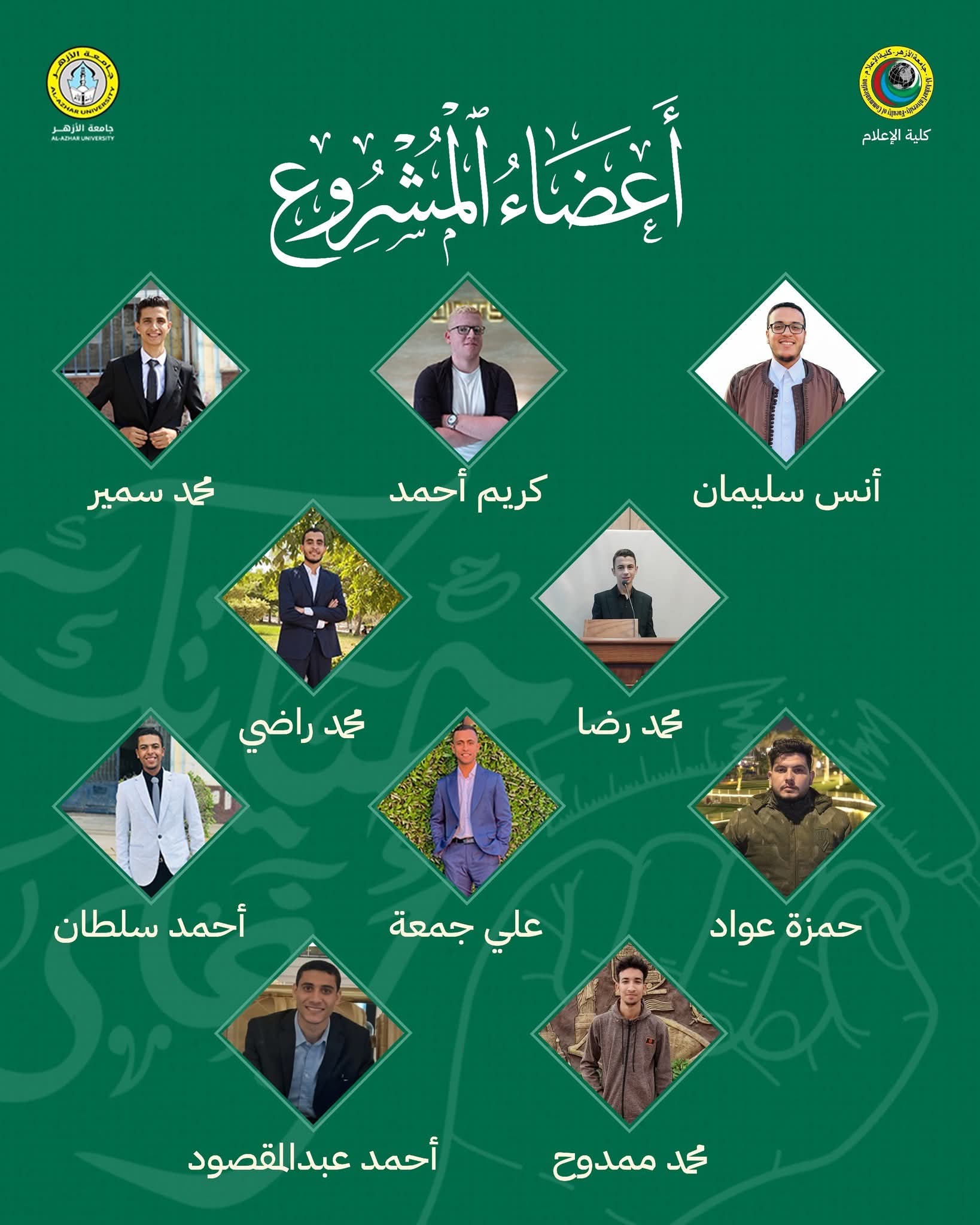 ويضم فريق العمل عددًا من طلاب قسم العلاقات العامة والإعلان، وهم: محمد رضا محمد عبد الفتاح، أحمد سلطان صبحي محمد، محمد ممدوح إبراهيم محمود، محمد راضي السيد عبد العزيز، أنس سليمان حسين الهادي (وافد)، حمزة عواد السليم (وافد)، كريم أحمد مصطفى عبد المحسن، محمد سمير محمد إبراهيم حمادة، أحمد عبد المقصود محمد عبد المقصود، وعلي جمعة لبيب لبيب.
