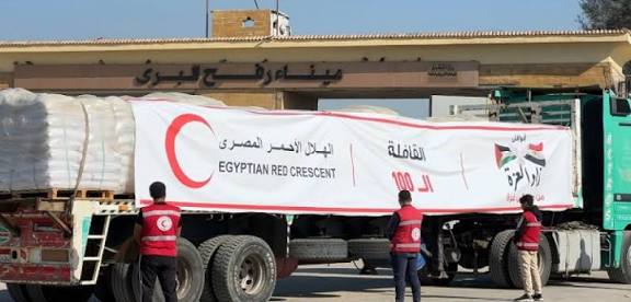 أطلق الهلال الأحمر بمصر قافلته رقم 139 تحت شعار زاد العزة من مصر إلى غزة في وقت مبكر من صباح اليوم.